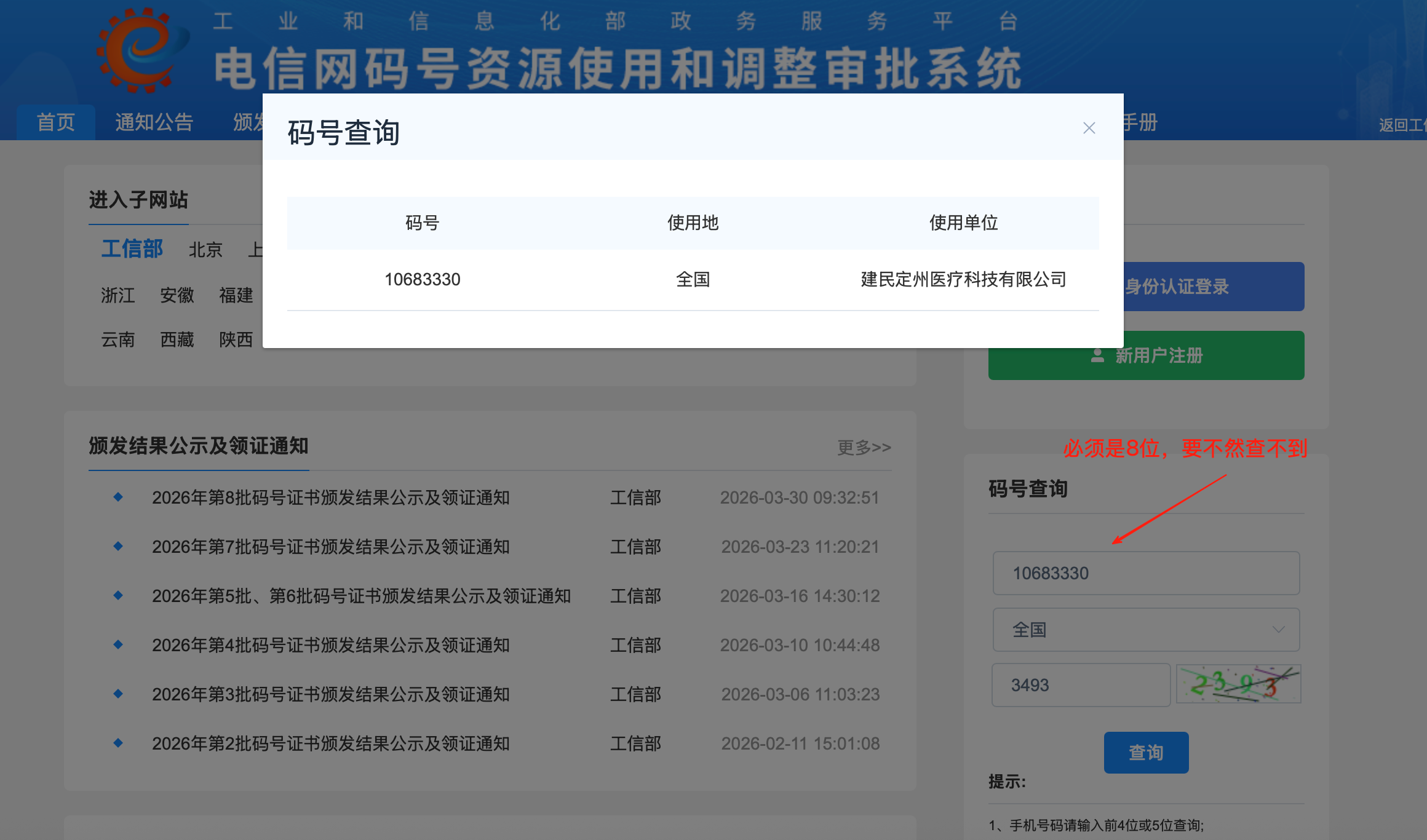 中华人民共和国工业和信息化部政务服务短信通首查询地址: